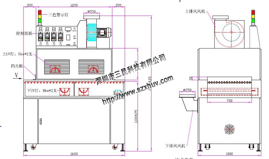1、UV灯功率:6.0kw*2支、8kw*2支(卤素灯)
