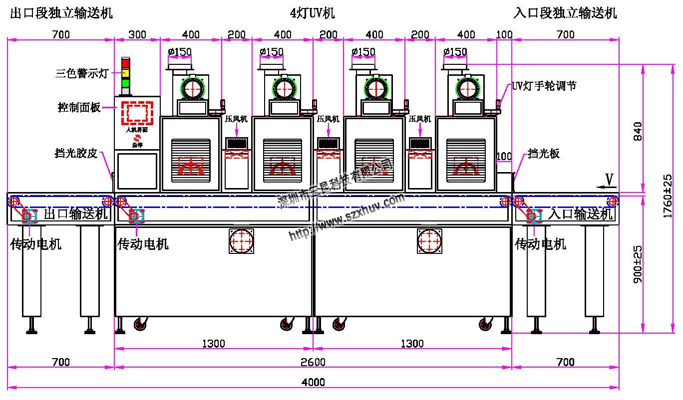 1、UV灯功率:6.0kw*4支(卤素灯)