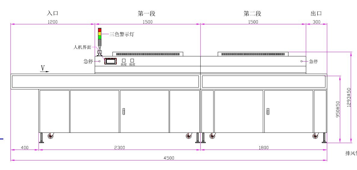 2、UV灯数量:分二段(每一段:上灯35支、下灯15支,总共:上灯70支、下灯30支)
