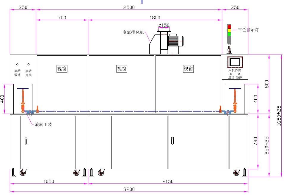 2. LED灯照射面尺寸:侧灯200mm、顶灯330mm