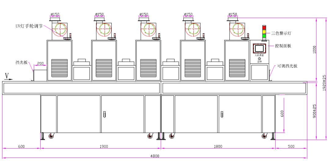 1、UV灯功率:6.0kw*5支(卤素灯)