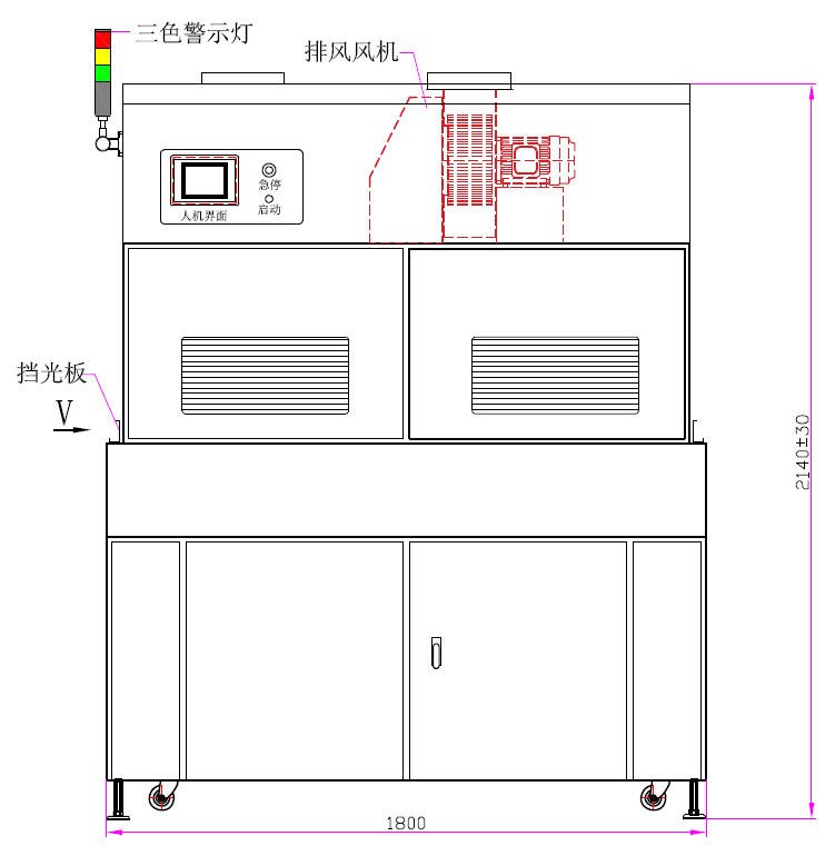2. UV灯总长:900mm、弧长:800mm