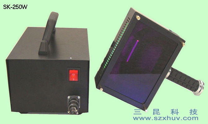 光固机是专业应用于水晶工艺品、玻璃、电子等行业的UV胶水(无影胶水)固化,其固化时间快、大大缩短的工作时间。 此 产品可手提、可固定在流水线上,并有过滤253.7nm紫外线的功能,对人体无伤害?;队愦笥没袄创寡⒀」?。