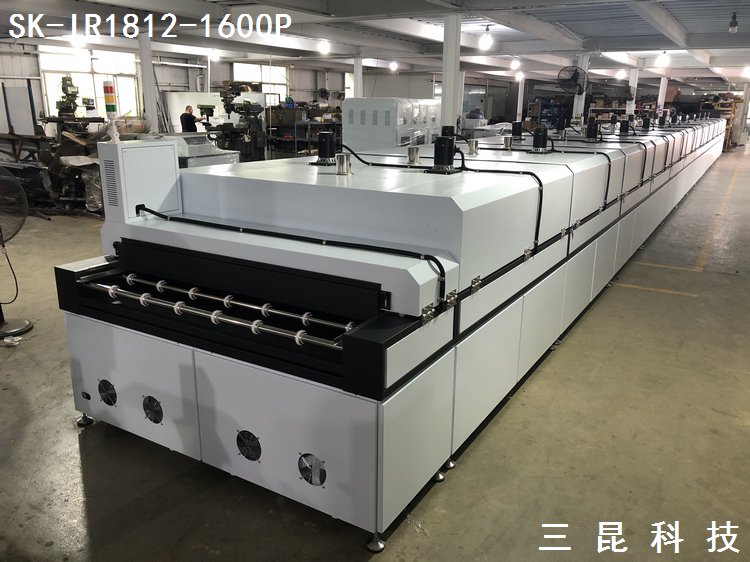大型IR隧道炉玻璃丝印烘干固化生产线加热烘烤线SK-IR1812-1600P