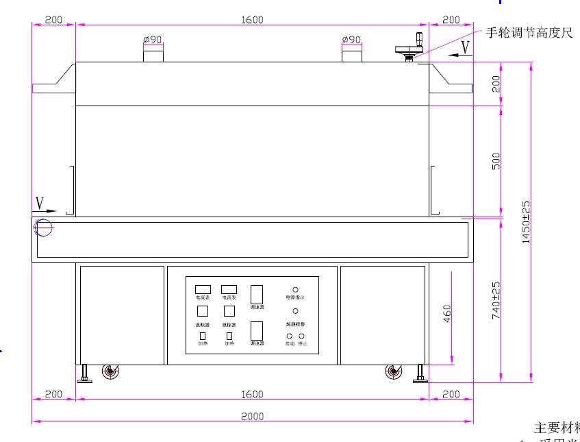4、输送材料:特氟龙网带(双通道、正反方向)