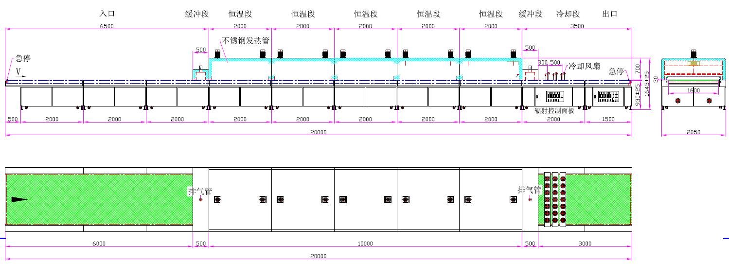 2. 发热管安装在工件上方