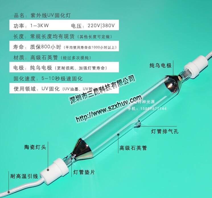 制造时可区分60W/cm.80w/cm,100w/com,120w/com,160w/com等单位面积的灯容量