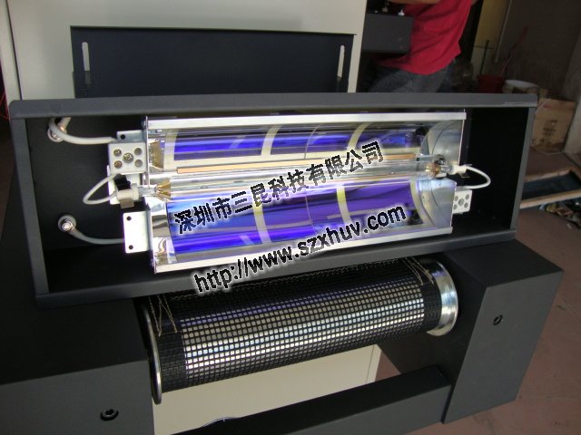高压汞灯光源配置,适合巷装材料的丝网印刷,可依据需要开启 - 吏或两吏灯筐。