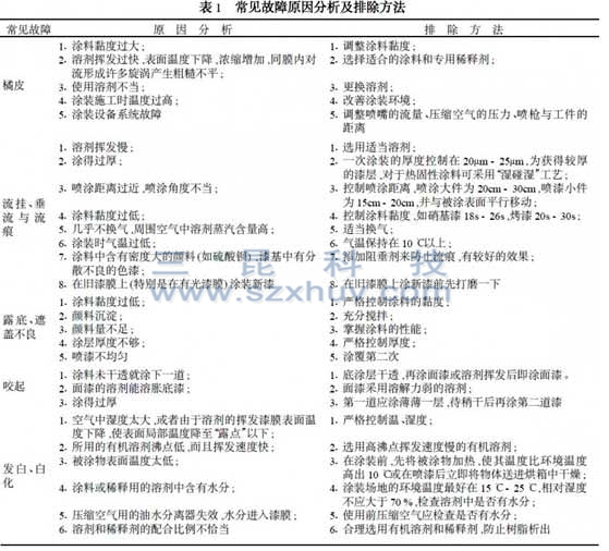 喷漆常见故障原因分析及解决措施