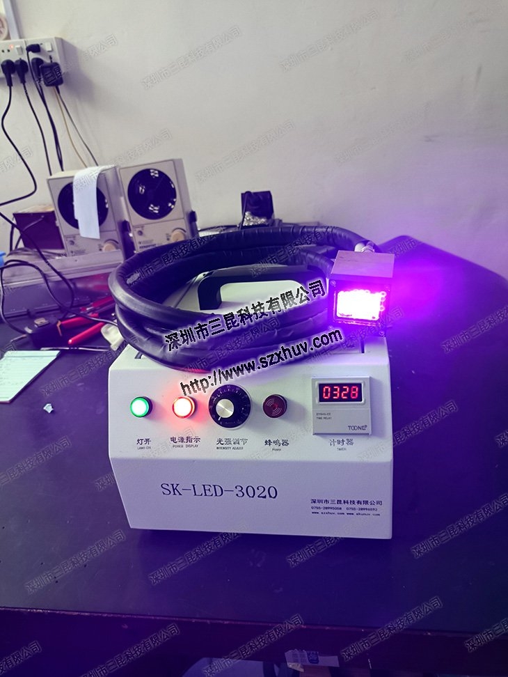 2.UVLED固化机测量的均匀性。UVLED测试仪器接收线束的采集器,与UVLED光的接触面积以及照射高度会使得测量的准确性存在偏差。三昆科技采取了控制变量法,控制单一变量。