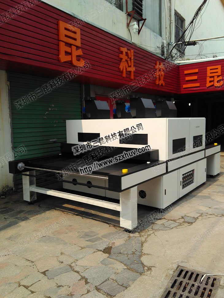 UV烘干机,主要应用于紫外线(UV)油墨的光固化和特殊的皱纹效果(需加装皱纹系统)等。如UV冰花、UV皱纹、UV雪花、UV发泡、UV磨砂、UV凸油等多种工艺结合的产品的光固化。可配合斜臂式丝印机、垂直式丝印机、丝印机取料机械手完成生产。应用范围广,通过紫外线照射液态材料表面使液态材料短时间内凝固,速度及快。