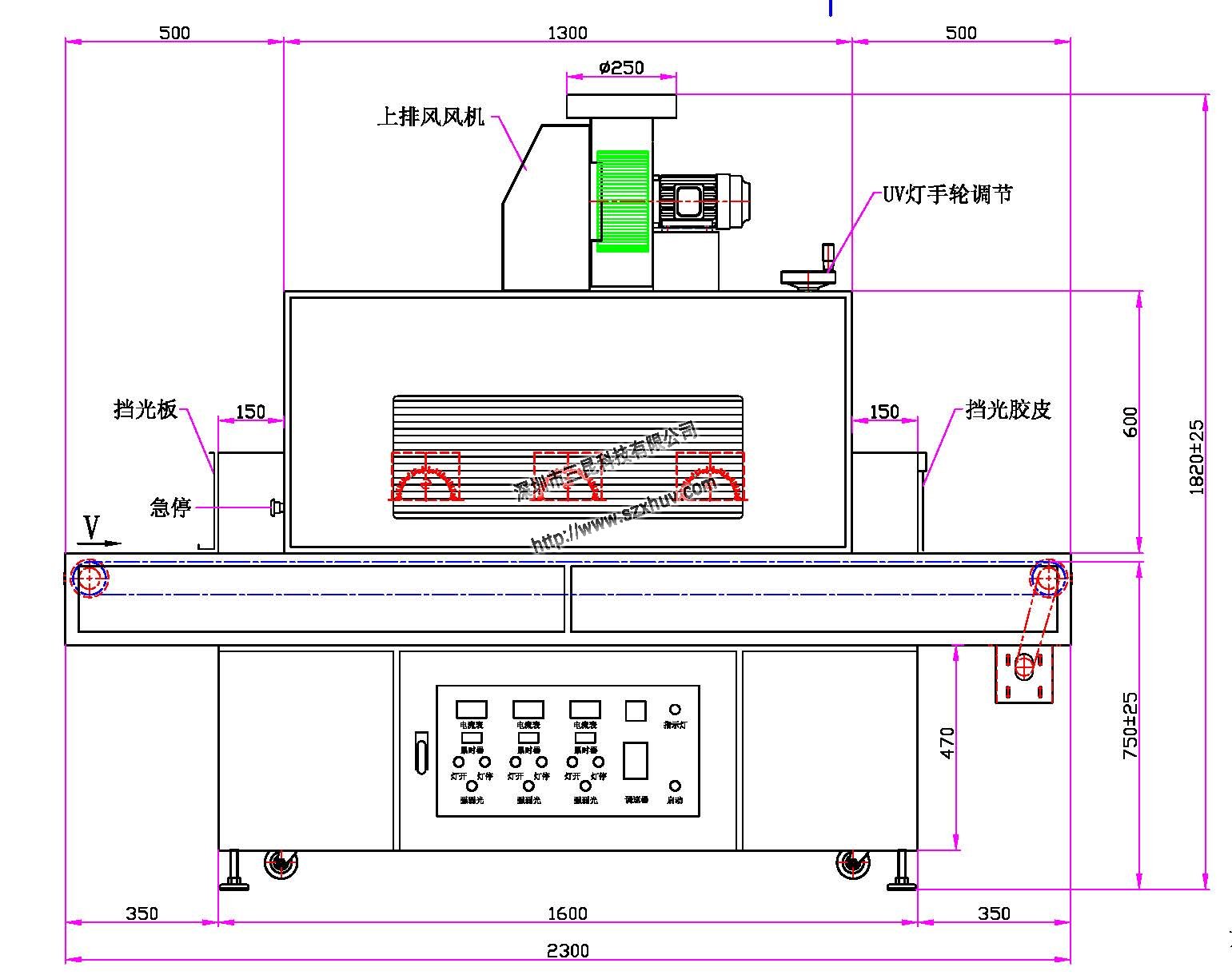 1、UV灯功率:4.0kw*3支(卤素灯)