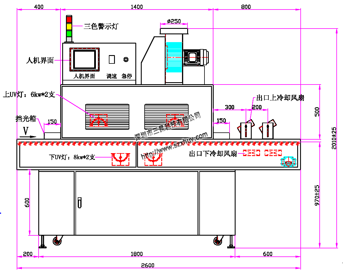 1、UV灯功率:6.0kw*2支、8kw*2支(卤素灯)